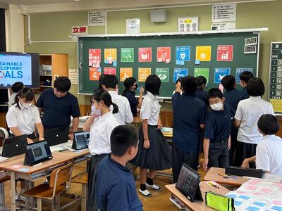 『幸せな世界』について他者とともに考えを深めるとともに、SDGsを知り、自分たちにも何かできそうだと感じるこができた時間となりました。2学期の総合的な学習の時間は、SDGsをテーマに進めていきます。清流祭の学年発表もSDGsの内容で行う予定です!