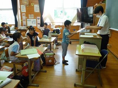 本日【10月6日(金)】通知表(前期)を児童に配付しました。児童は少し緊張した様子で通知表を受け取っていました。ご家庭では、通知表を子どもさんと一緒に見ていただき、前期に頑張ったことや、もう少しだったところを振り返り、これからの更なる成長につなげてほしいと思います。
