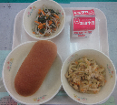 減量コッペパン、牛乳、山菜うどん、かみかみ和え