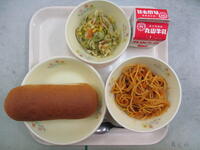 今日は小学1年生がリクエストしたスパゲッティとりっちゃんサラダです。そして今日はりっちゃんサラダが登場する『サラダでげんき』のお話を紹介します。・・・りっちゃんはお母さんが病気になってしまったので、なにかいいことをしてあげたいと考え、おいしいサラダを作ることにしました。きゅうり、キャベツ、トマトをお皿にのせたところで、ねこ、いぬ、すずめ、あり、うまが次々とやってきて、りっちゃんにサラダ作りのアドバイスをします。北極からは白熊の電報が届き、最後にはゾウが飛行機に乗って登場します。みんなが手伝ってくれたおかげで、おいしいサラダが完成しました。りっちゃんのお母さんはそのサラダを食べてたちまち元気になりました。・・・北方学園のみなさんもりっちゃんサラダを食べて午後も元気に過ごしましょう。