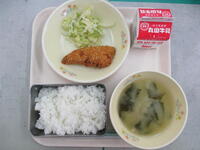 ごはん 牛乳 じゃがいものみそ汁 ホキフライ 添えキャベツ