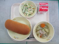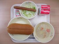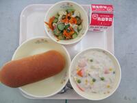 コッペパン 牛乳 白菜のクリーム煮 つぼみふっくらサラダ