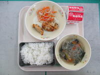 小学2年生は国語の「ことばあそびをしよう」の単元で、「数えことば・数えうた」を学習しました。一から十の数字が含まれている食材を歌のように読みました。“いちじく にんじん さんしょに しいたけ ごぼうに むかごに ななくさ はつたけ きゅうりに とうがん”。今日の給食ではこのうち4つの食材を使いました。どの食材が使われているか探しながら食べてみてください。