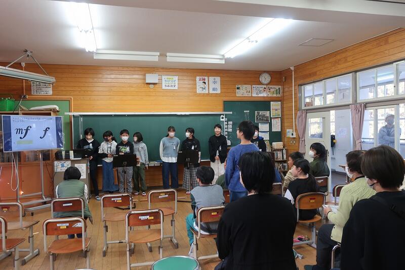 まず、初めは「音楽グループ」。リコーダーと歌、練習の時よりも声が出ていました。途中に、自分たちの感想を交え、堂々と発表することができました。