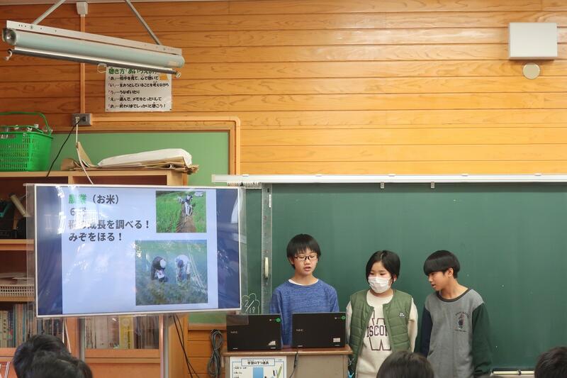 次に、「社会グループ」。どの発表もすばらしかったですが、お米作りのプレゼンが、説明がわかりやすくすばらしかったです。