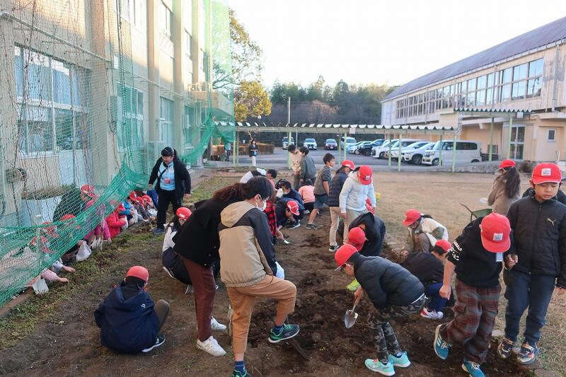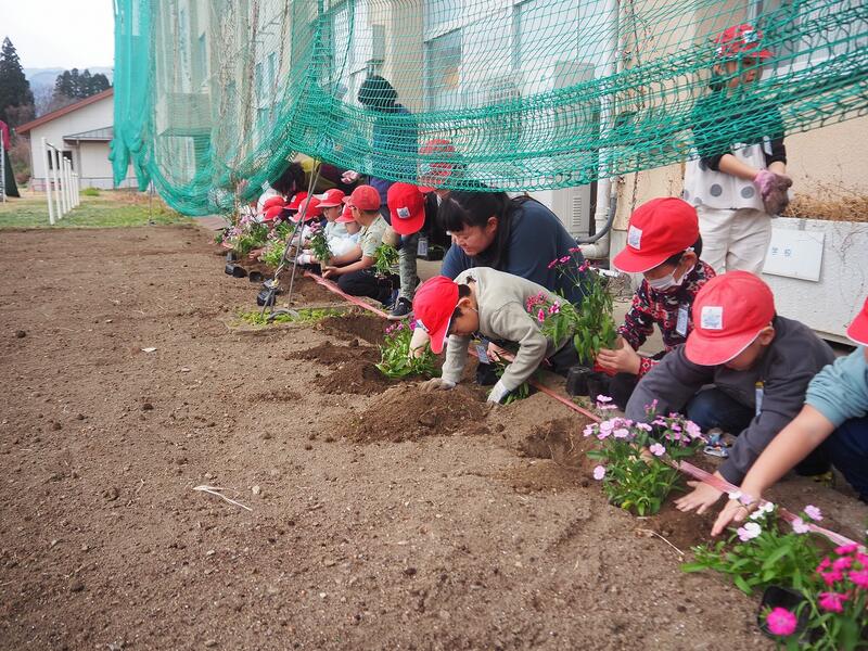 オレンジタイムや委員会活動の時間に、全校児童で一生懸命準備を行い、以下の4種の花の苗を植えました。