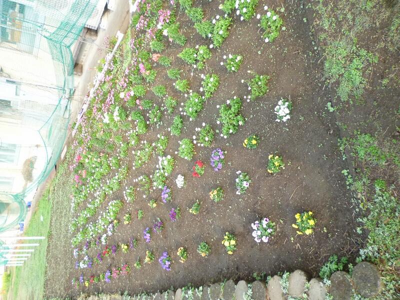 1月下旬に全校児童で花植えに取り組み、約1ヶ月が経過しました。どの花も、元気に育っています!