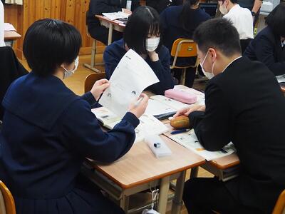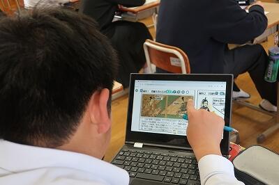 生徒たちは後鳥羽上皇や後醍醐天皇の挙兵・元寇など、さまざまな知識や資料を基に、自分たちの仮説の確認をしつつ答えをまとめました。どの生徒も生き生きと授業に参加していました。