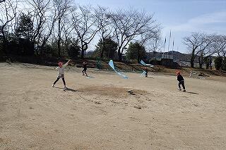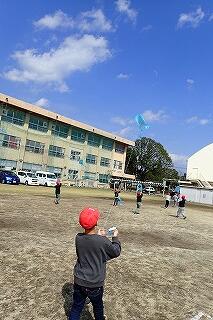 2回目は、いい感じの風があり、今だ!!と急いで運動場に行ったのですが、風があちこちの方向に向き、大変でした。