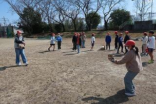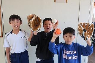 3名の野球やろうぜ!委員会のメンバーを中心に、楽しく仲良くキャッチボールを行いました。事前に体育でキャッチボールを練習していましたが、グローブでキャッチすることが難しかったようでした。委員会の児童が「次は〇〇さんと〇〇さんだよ。」と声をかけたり、得意な児童がアドバイスしたりしながら、全員がグローブに触れて、キャッチボールに挑戦することができました。これを機会に野球に興味をもってもらえるといいなと思います。