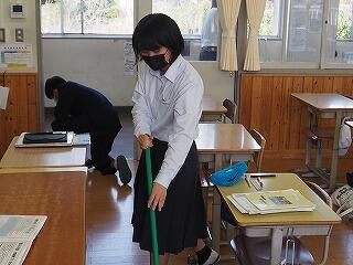 3月13日(水)、中学3年生は今、卒業式に向けて、歌の練習や予行練習を行い、旅立ちの準備をしているところです。今日は9年間お世話になった学び舎へ感謝の気持ちを込めて、教室や階段等、様々な場所の清掃を行いました。