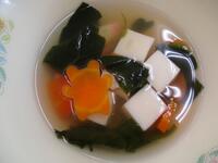 今日は冬瓜についてのお話です。とうがんという漢字は冬の瓜と書きます。冬瓜の旬は6月から10月まで、夏にとれる野菜です。なぜ夏にとれる野菜なのに冬の瓜という漢字で書くのかというと、冬瓜はそのまま置いていても冬まで腐らずに保存できるからだそうです。形はきゅうりを大きくしたような形で重さは5~6キログラムにもなる大きな野菜です。漬物やサラダ、煮物にすることが多いのですが、今日の給食ではみそ汁に入れました。