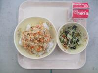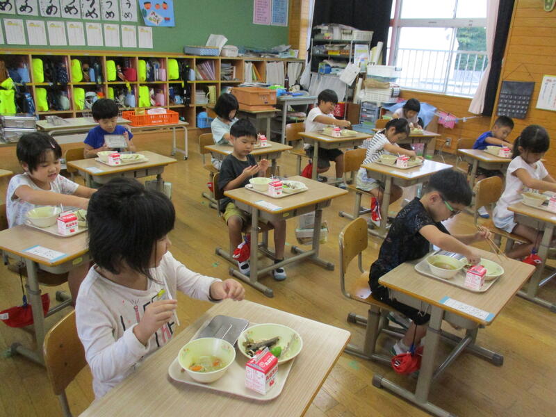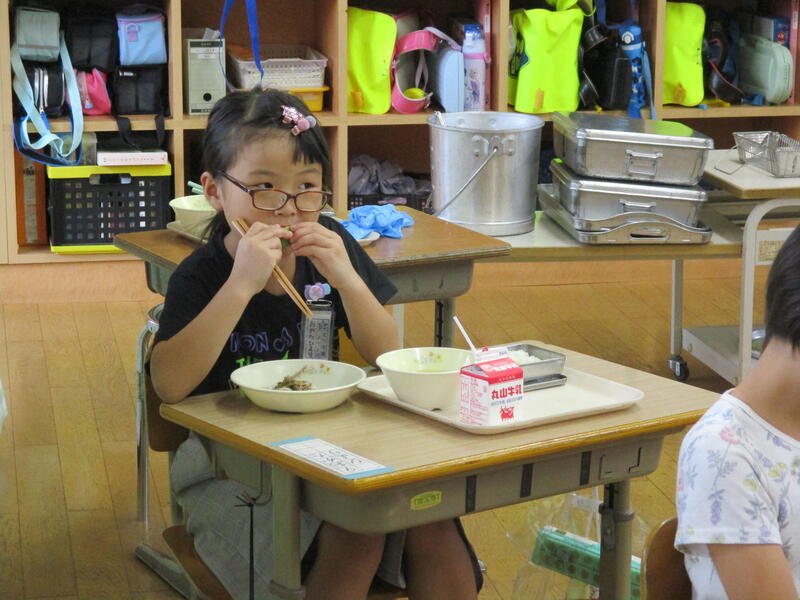 今日から2学期です。久しぶりの給食はいかがですか。給食当番の仕事がきちんと出来ましたか。当番の人も、そうでない人も爪を切って、しっかり手を洗って準備が出来たでしょうか。まだまだ暑い日が続きますが、元気に毎日過ごすためには、朝・昼・夕の3回の食事をしっかり摂ることが大切です。2学期からの給食も好き嫌いせず、苦手なものもチャレンジして食べましょう。