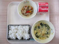 今日は中学2年生がリクエストした「トマトを使った料理」としてミネストローネを取り入れました。中学2年生は技術の時間に、トマトを例に作物の栽培技術について学習しました。品種改良のこと、作物を栽培する農家の方の工夫、作物の売り方を調べたそうです。ちなみに今日の給食のトマトは、缶詰のトマト缶を使いました。基本的に給食ではりっちゃんサラダなどの和え物料理は生のトマト、ミネストローネなどの煮物料理には缶詰のトマトを使っています。