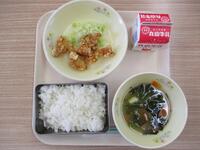 ごはん 牛乳 ほうれん草のみそ汁 鶏肉のから揚げ 添えキャベツ