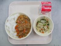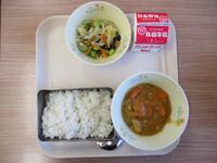 今日の献立は、中学校の保体委員会が考えた献立です。「夏の暑さに負けない体づくりをしよう」という7月の目標で夏のおすすめ食材を調べました。今日のカレーとサラダには、栄養価の高い夏野菜、なす、ズッキーニ、オクラなどが入っています。夏野菜には、体を冷やす効果があり、夏バテ予防にも効果的です。夏の暑さに負けないように、しっかり食べましょう。