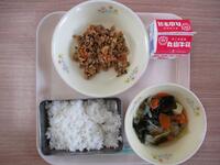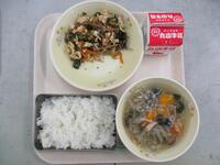 ごはん 牛乳 かきたま汁 鶏肉のみそころばかし