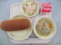 コッペパン 牛乳 たこ焼き風 五目スープ
