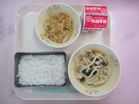 ごはん 鉄火みそ 牛乳 のっぺい汁