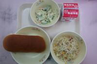 減量コッペパン 牛乳 炒めビーフン チキンサラダ