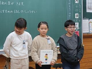 3年生の国語の学習で「おすすめの一冊を決めよう」という学習があります。今回は、「1年生におすすめの本」を話し合いで決めました。2回の話し合いを終えて、6冊の本を3年生は選びました。