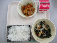 ご飯 牛乳 肉じゃが 茎わかめの酢の物