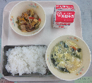 ごはん、牛乳、高野豆腐と昆布の炒り煮、酢みそ和え