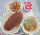キャロットパン、牛乳、かぼちゃの元気揚げ、きのこのスープ