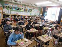 本校の中学3年生は、今日を除けばあと1日、小学6年生はあと7日と、給食を食べられる日が残りわずかとなりました。9年間で数えると、中学生は約1800回、小学生は約1200回もの給食を味わってきました。