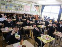 卒業前の給食の様子(小6・中3)