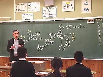 先日中学2年生を対象にした「夢の教室」がありました。ボクシングの元WBC世界フェザー級チャンピオンである越本隆志先生が「夢先生」となり、夢を持つことやその夢に向かって努力することの大切さを話してくださりました。