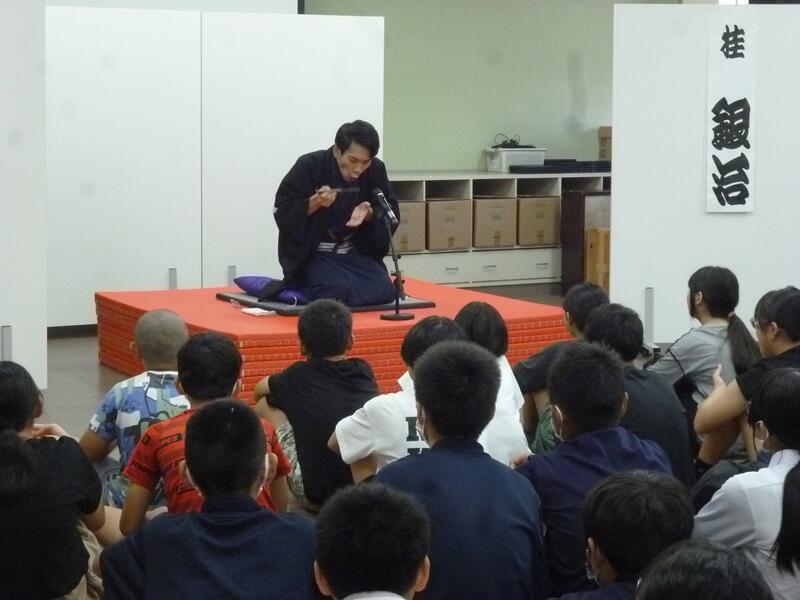 9月17日(火)の4校時(小1~5年生)5校時(小6、中学生)に鑑賞教室を行いました。延岡市出身の桂銀治さんが『落語』を披露してくださいました。