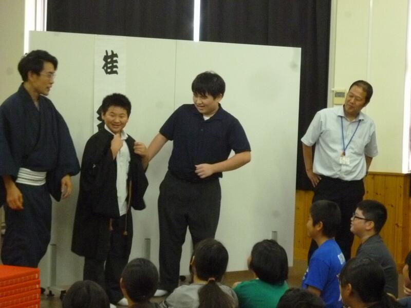 小学生中学生ともに各学年1名ずつ落語体験もさせていただきました!銀治さんに教わりながら上手にすることができました!
