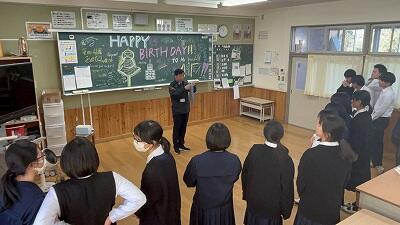 11月24日(金)、中学校3年生では明日担任の安田先生が誕生日ということで、日頃の感謝の気持ちを伝えるために、昼休みにサプライズでお祝いを行いました。
