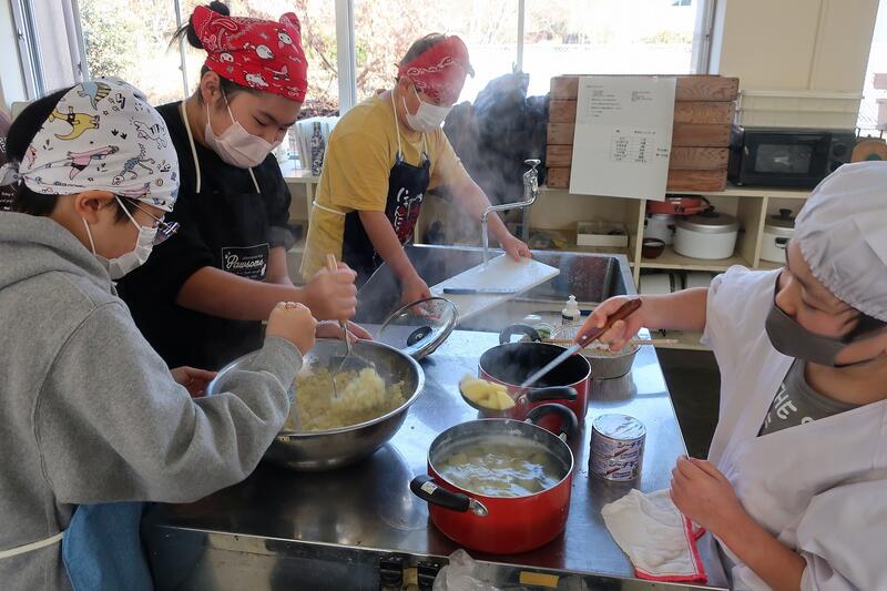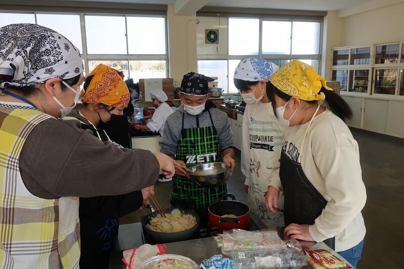 みそ汁は、小松菜・人参・豆腐を具材にして作りました。班によって人参が少し固いところもあったようですが、具材の切り方や入れる順番を計画通りに行い、おいしいみそ汁ができました。