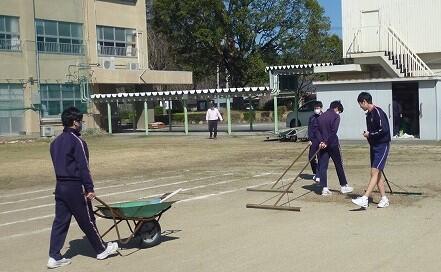 これまで9年間過ごした学校の校舎やグラウンドなどの整備を行い、感謝の気持ちを込めて清掃を行いました。