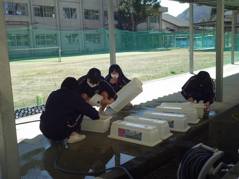 学校では、卒業式に向けて、花壇や植木鉢にお花を育てています。