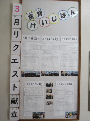 本校では、好きな献立を希望するリクエスト献立を実施しています。