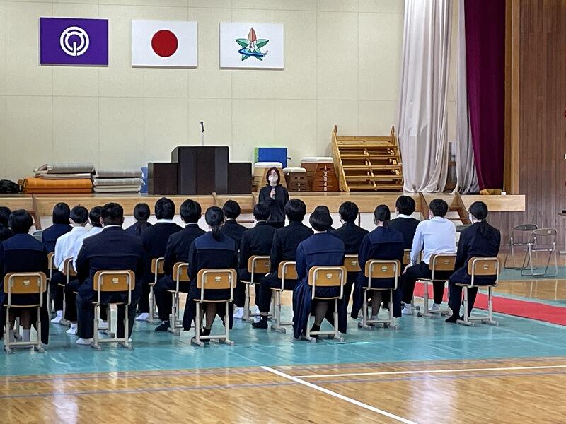 昨日、県立高校一般入試が終了し、中学3年生は本日から卒業式に向けて本格的な準備を始めました。まずはじめに、練習前に、何のための卒業式なのか、どんな卒業式にしたいか、3年生と共に確認し、目的を明確にして行いました。
