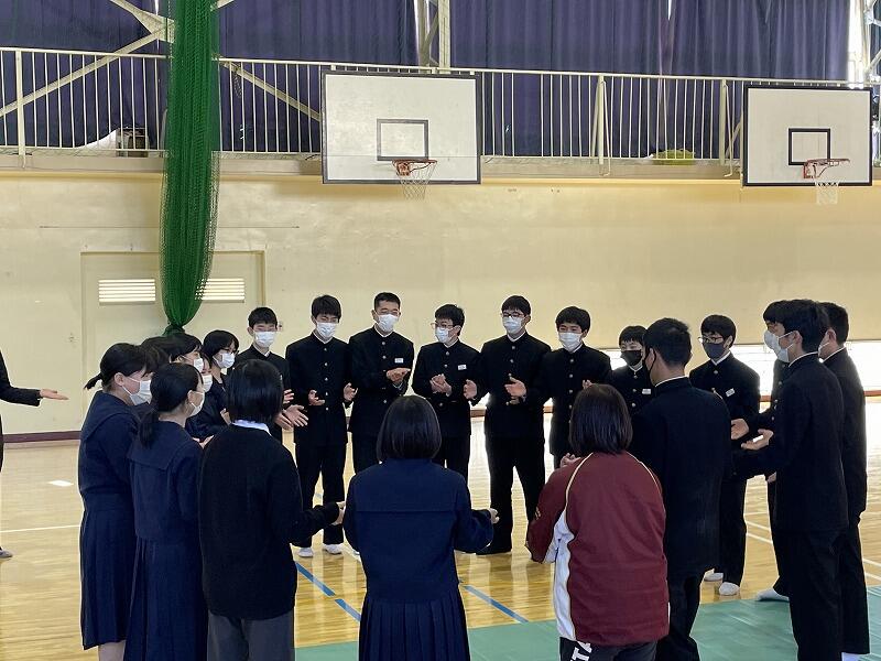 終了後に、卒業式実行委員の音頭で円陣を組み、卒業式の成功に向けて意識を高めました。