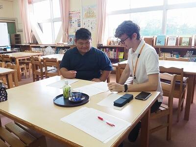 夏休みの期間中、教育委員会のアンソニー先生に、英語暗唱弁論大会のご指導をしていただきました。