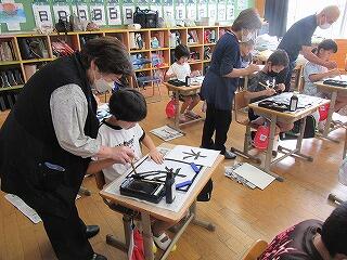 24日(火)は、はげまし隊の方々に入っていただく1回目の授業でした。今回は「木」を書いて、「左はらい」「右はらい」の書き方を学習しました。書道の先生による指導ということで、道具の使い方から書くときの筆遣いまで、詳しく教えていただきました。ありがとうございました。