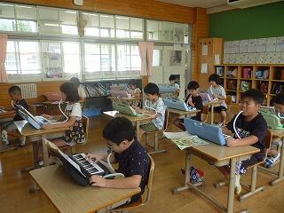 小学2年生は、鍵盤ハーモニカの「指くぐり」と「指またぎ」を練習しています。5本の指を使って「ドレミファソラシド」をひくときは、ミをひいている中指の下を親指がくぐってファをひきます。「ドシラソファミレド」をひくときは、ファをひいている親指の上を中指がまたいでミをひきます。この演奏方法がとても上手になってきました。そして伴奏に合わせてみんなでいっしょに演奏できるようになってきました。慣れてきたので、今度は速さを少し速くして、練習してみたいと思っています。