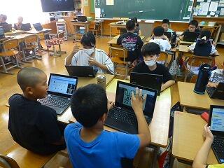 総合の学習で、五ヶ瀬川の魚について調べています。調べたことを発信するために、Pepperを活用していこうと思います。そのために、ロボブロックスを使って、プログラミングを作っています。魚の名前や、写真、魚の特徴などを調べて、Pepperにしゃべらせる言葉を入力しています。