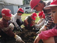 10月27日(月)2.3校時に1、2年生がいもほりをしました。長く茂ったつるを抜いた後、土の中からいもを掘り出しました。大きいいも、小さいいも、へんな形のいも・・子ども達の驚きと喜び声が止まりませんでした。