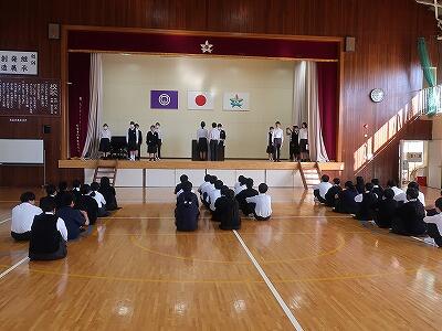 旧生徒会役員は、1年間の活動を通して感じた仲間への感謝の気持ちや、自分自身がどのように成長したかなどを発表しました。