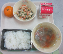 ごはん、牛乳、神楽汁、千切大根の白和え、みかん
