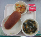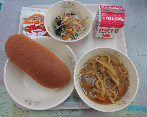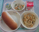 ミルクパン、牛乳、ミネストローネ、こまツナサラダ