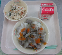 ごはん、牛乳、じゃがいものうま煮、五色和え