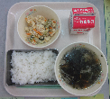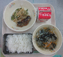 麦ごはん、牛乳、わかめの中華スープ、チャプチェ